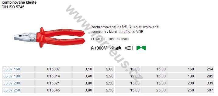 - kombinované kleště s izolovanými rukojeťmi VDE, vhodné pro univerzální použití v dílně i elektroinstalacích