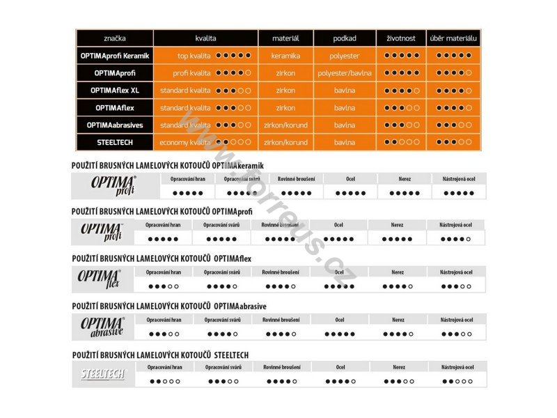 - pro broušení nerezi, všech druhů oceli i vysoce pevnostních druhů ocelí, neželezných kovů a jejich slitin